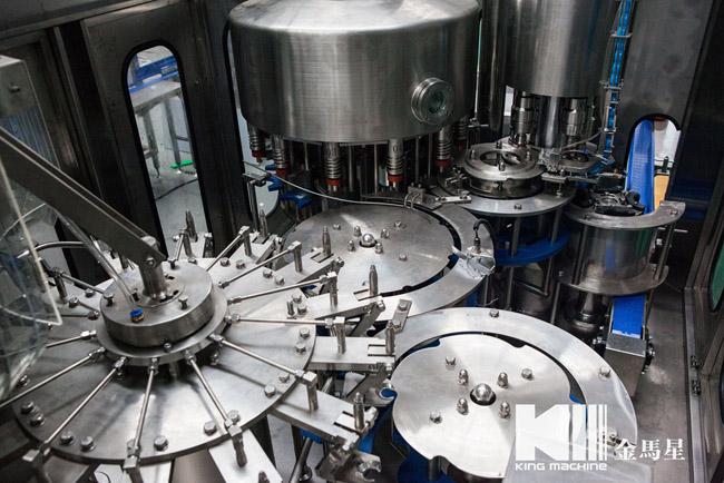 飲用水灌裝機(jī)集沖洗、灌裝、旋蓋于一體,全過程自動化運(yùn)行,主要適用礦泉水、純凈水等不含氣飲料的沖瓶、灌裝、封口連續(xù)作業(yè)。本機(jī)大部分電器系統(tǒng)零件均采用國外優(yōu)良產(chǎn)品,所有與液料接觸的地方均采用優(yōu)質(zhì)的不銹鋼材料制作,主關(guān)鍵部件采用數(shù)控機(jī)床精密加工, 整機(jī)光電檢測各部件的運(yùn)行狀況,無瓶不灌裝,無瓶不送蓋,自動化程度高,操作簡易,具有耐磨、穩(wěn)定、故障率低等特點(diǎn),產(chǎn)品質(zhì)量處于行業(yè)前列,是新老飲料投資者的選擇。